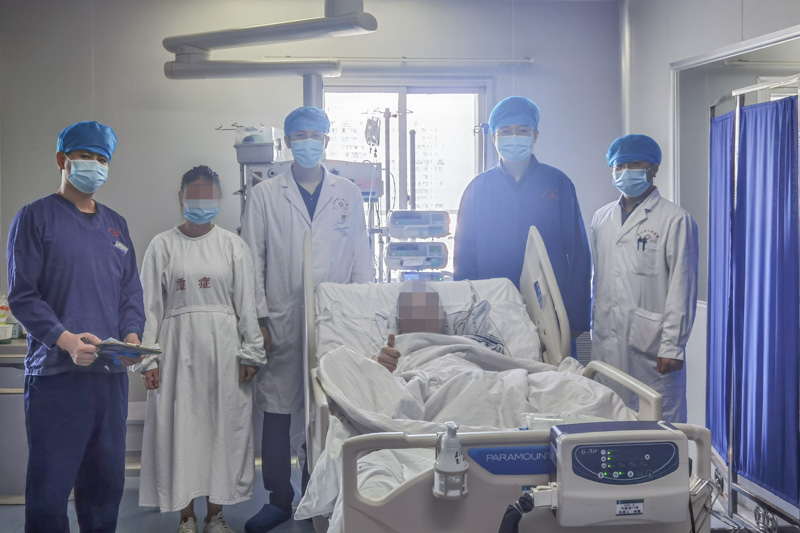 ECMO成員到達后立即開始消毒鋪巾,熟練地進行穿刺置管、通路連接,從呼叫團隊到順利轉機,短短20分鐘,ECMO順利運轉起來。患者生命體征逐漸穩定下來,經歷反復發作的惡性心律失常、嚴重低心排、感染等重重關卡后,在積極治療6天后順利撤機轉入普通病房。