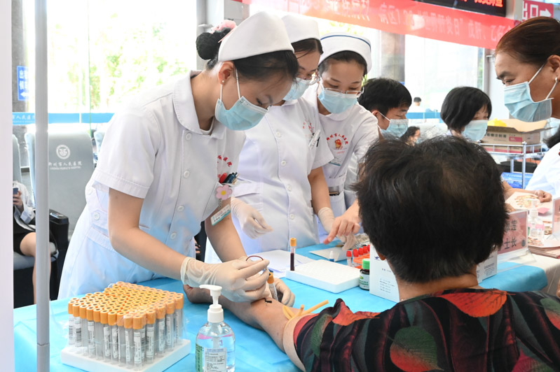 活動現(xiàn)場,醫(yī)護(hù)人員為前來咨詢的群眾免費(fèi)篩查乙肝、丙肝、戊肝、測血壓。肝病團(tuán)隊專家耐心為就診群眾答疑解惑,針對如何早期識別肝臟疾病、用什么方法篩查肝炎、如何預(yù)防肝癌等問題,提供合理化的治療方案和指導(dǎo)建議。