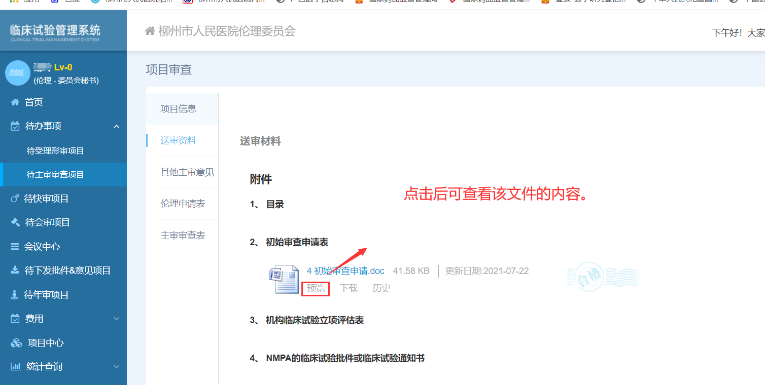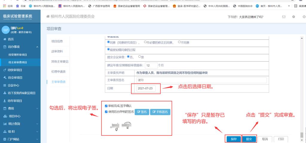 2.4點擊“提交”即完成了該項目的本次主審,再點擊“待主審審查項目”可選擇另一項待審項目。