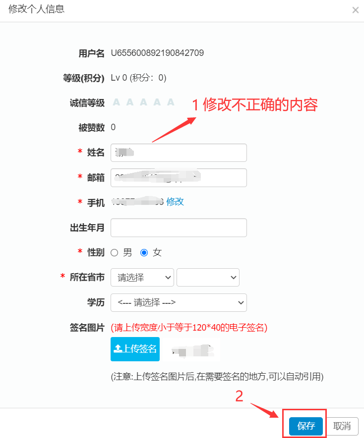 ,選擇“修改密碼”或“個人信息”,按頁面提示修改密碼或個人信息,修改完成后單擊“保存”,即完成密碼或個人信息修改。(如下圖)