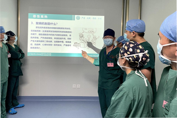 惡性高熱(MH)是目前所知的唯一可由常規麻醉用藥引起圍手術期死亡的遺傳性疾病,死亡率高達80-90%,應用特效藥丹曲林后死亡率仍有2%-3%。柳州市人民醫院麻醉科是柳州市唯一一家擁有特效藥丹曲林的醫院,為響應“中國麻醉周”關于安全麻醉的倡議,科室專門舉辦了“麻醉危機事件——惡性高熱模擬演練”活動。