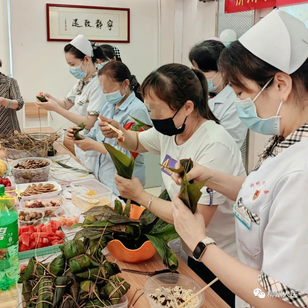 活動現場,大家用晶瑩剔透的糯米、新鮮紅潤的紅棗、墨綠鮮翠的蘆葦葉等原料包出了造型各具特色的粽子。還開展了紙傘、團扇繪畫等趣味活動。醫護人員將煮好的粽子分發給病友們品嘗,送去節日的問候,病友們對醫護人員暖心的服務表示感謝。