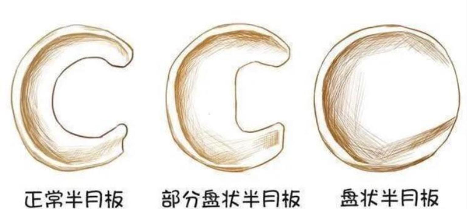 這是一種異常半月板,圓盤形、又大又厚,在膝關節屈伸活動過程中這種肥厚的半月板常常會引發彈響,而且往往彈響的發生頻率很高。這種半月板受損傷概率很大,盤狀半月板導致的響聲如果沒有不適感可先觀察,如果有疼痛或者交鎖,則需醫院就醫,可能需要關節鏡手術治療。