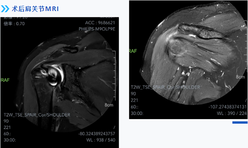 經過多方打聽,張師傅慕名來到柳州市人民醫院運動醫學科就診。運動醫學科主任韋釗嵐博士結合患者實際情況,仔細查體及閱片后給出了明確診斷:巨大肩袖撕裂,腋神經損傷(后上型巨大肩袖撕裂回縮導致神經牽拉)。
