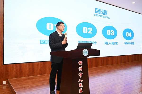 會(huì)上,肖運(yùn)平副院長對(duì)各兄弟單位的到來表示歡迎和感謝,對(duì)醫(yī)院的住培工作情況和培訓(xùn)成效做了簡(jiǎn)要介紹,希望學(xué)員們把握機(jī)遇,主動(dòng)出擊,與心儀的單位達(dá)成就業(yè)意向,希望前來招聘的兄弟單位有所收獲,滿載而歸,同時(shí)鼓勵(lì)學(xué)員們改變就業(yè)觀念,主動(dòng)積極的到基層醫(yī)療衛(wèi)生服務(wù)機(jī)構(gòu)工作,做守護(hù)基層人民群眾健康的健康衛(wèi)士,在艱苦奮斗中砥礪意志,在實(shí)踐鍛煉中增長工作本領(lǐng),實(shí)現(xiàn)自我人生價(jià)值,為健康中國建設(shè)添磚加瓦。