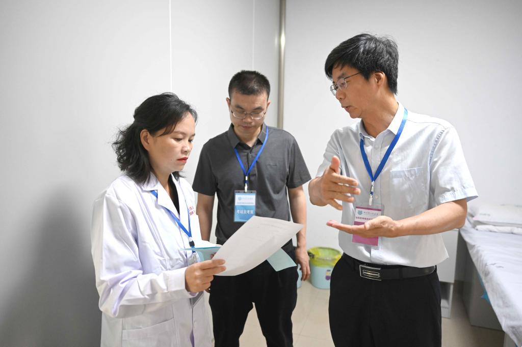 考核過程中,自治區(qū)巡考員陸競艷,柳州市衛(wèi)健委宣教科科長姚建光,柳州市人民醫(yī)院副院長潘光棟到場巡考。在整體了解本次考務(wù)工作及現(xiàn)場巡考后,自治區(qū)巡考員陸競艷對醫(yī)院本次考核的嚴(yán)密組織和規(guī)范實(shí)施給予了充分的肯定,同時也給出了寶貴的意見和建議。